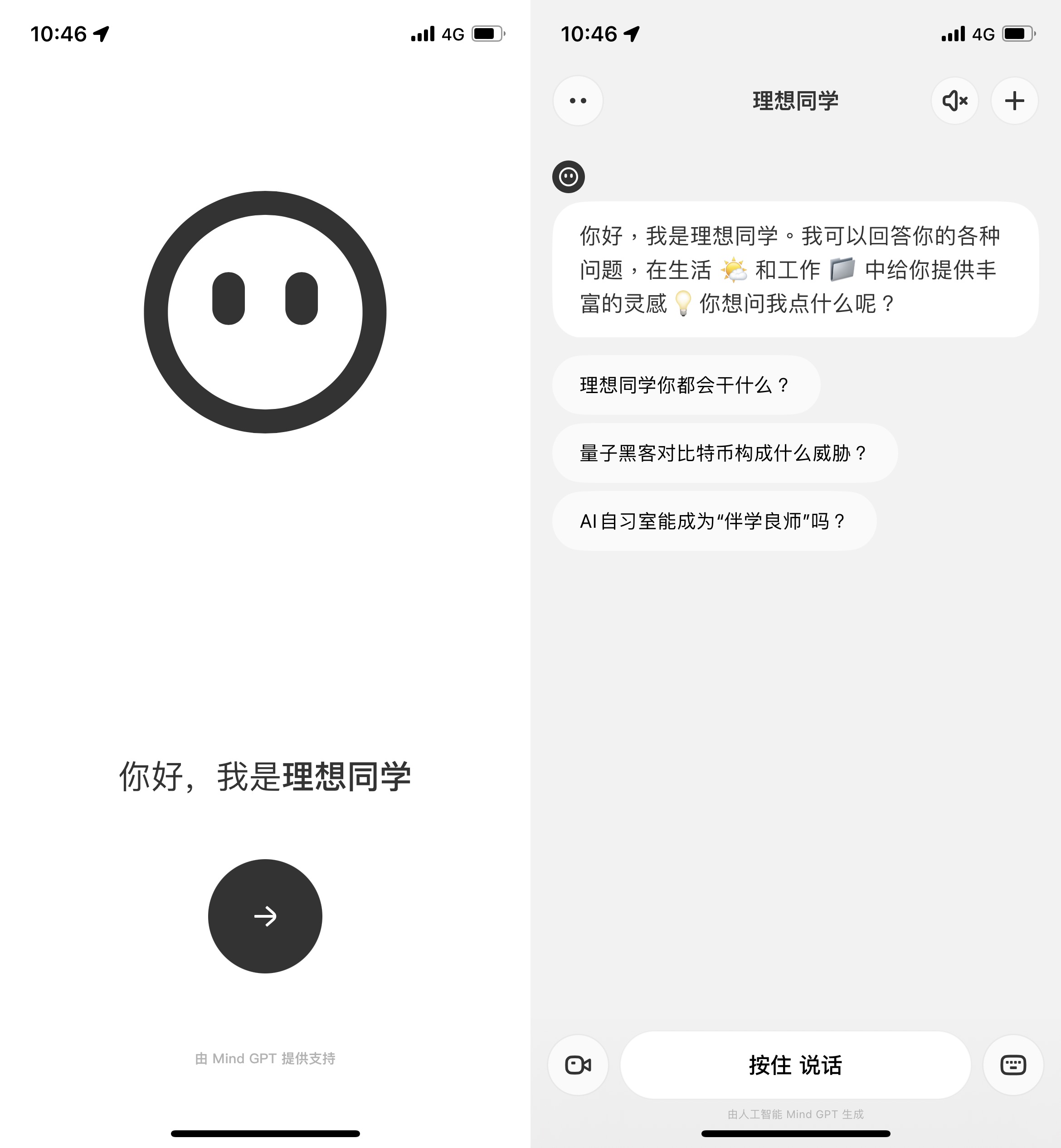 抱负轿车最近推出了其 AI 帮手“抱负同学”的独立 App,该产品由抱负轿车自研大模型Mind GPT 驱动。